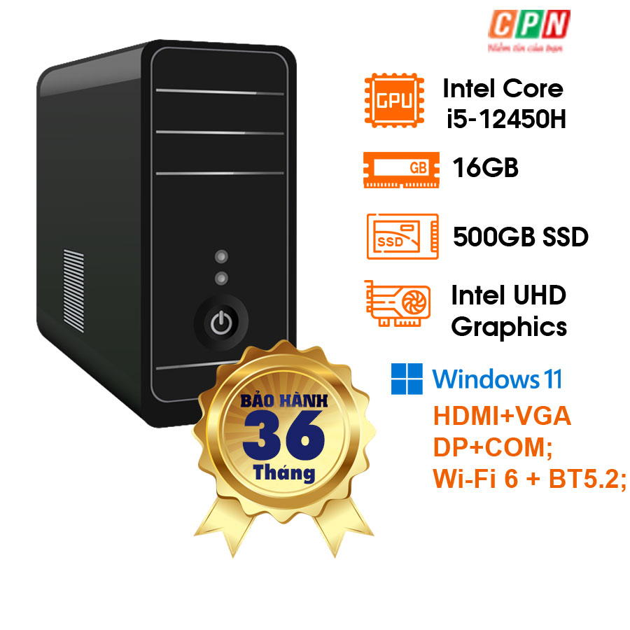 Bộ linh kiện máy tính CPC-12416G500W.30B: Intel Core i5-12450H; 16GD4; SSD 500GB M.2 NVME; noDVD; HDMI+VGA+DP+COM; Wi-Fi 6 + BT5.2; Tower 400W; Win 11 Pro; Black
