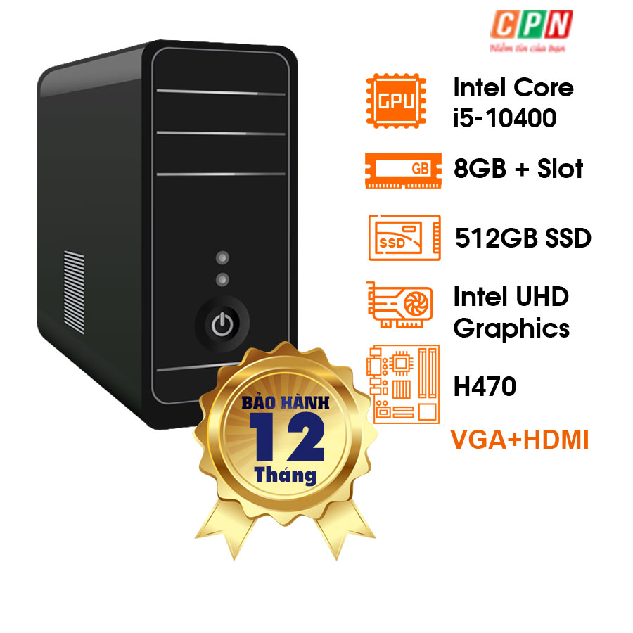 Bộ linh kiện máy tính Value V470-1048G512.055 - Intel i5-10400; H470; 8GB + 1slot; 512GB SSD 2.5; VGA+HDMI; Tower 250W; DOS