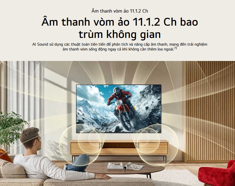 TV LG 65-inch 4K 65NU855BPSA- webOS 26, 60Hz, Voice Seach; Bộ xử lý α7 AI Processor 4K Gen9 ; Loa 20W, âm thanh vòm AI Sound Pro (11.1.2 kênh) ,Nút AI mới, điều khiển giọng nói, thao tác kéo thả trên AI Magic Remote, 2 chân 2 bên (2026)